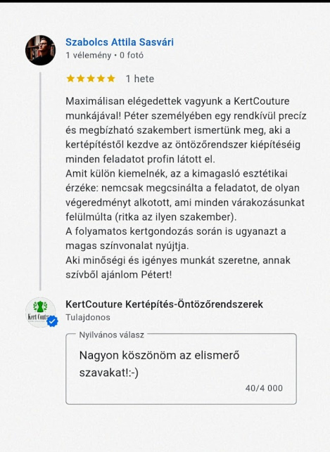 Gyepszőnyeg telepítés
